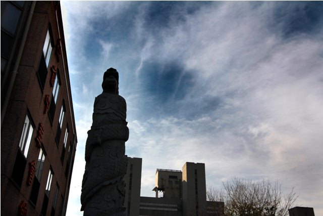 One of two concrete statues on Commissioner Street, erected last year to welcome visitors to Old Chinatown.