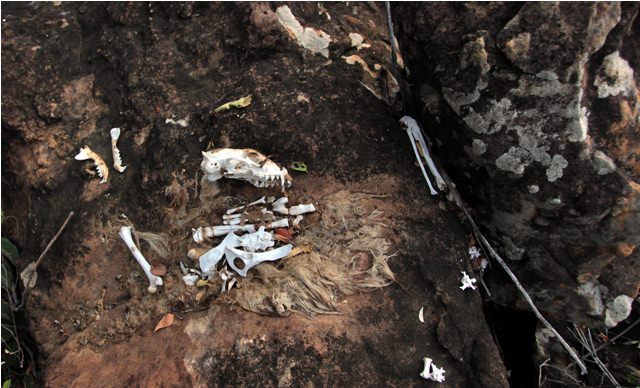 While walking on a high ridge, we came upon the remains of a lion cub. The mother must have stashed her cubs up there and one of them didn’t make it. I was strangely fascinated by the tiny bones. You can even see some baby lion fur underneath.