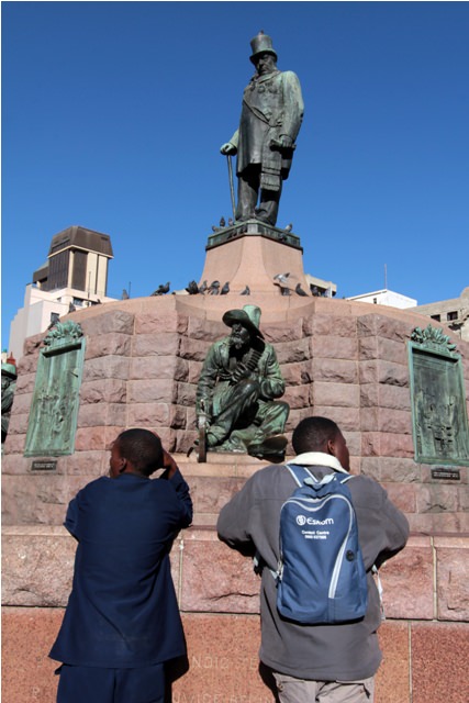 This statue of Paul Kruger, political and military hero of the former Afrikaans Transvaal Republic, sits at the center of Church Square and provides a striking juxtaposition of old and new South Africa.