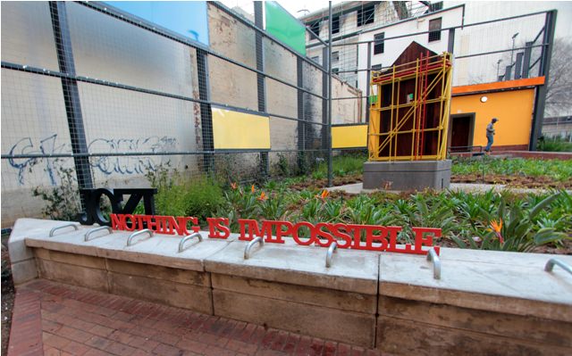 I thought about my choice yesterday afternoon when Joe and I visited Ernest Oppenheimer Park, a place that epitomizes what I love about Joburg. Like many other parks in the city centre, Oppenheimer Park used to be a nice little piece of green space, then became crime-ridden and filthy. Last year it was rehabilitated and re-opened, incorporating characteristic “New Jozi” style.