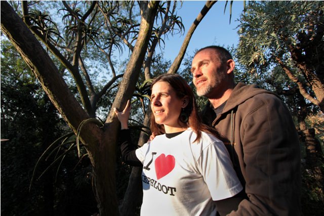 I thought about my choice yesterday evening, when Joe and I took an anniversary self-portrait in front of our aloe barberae tree in the back yard.