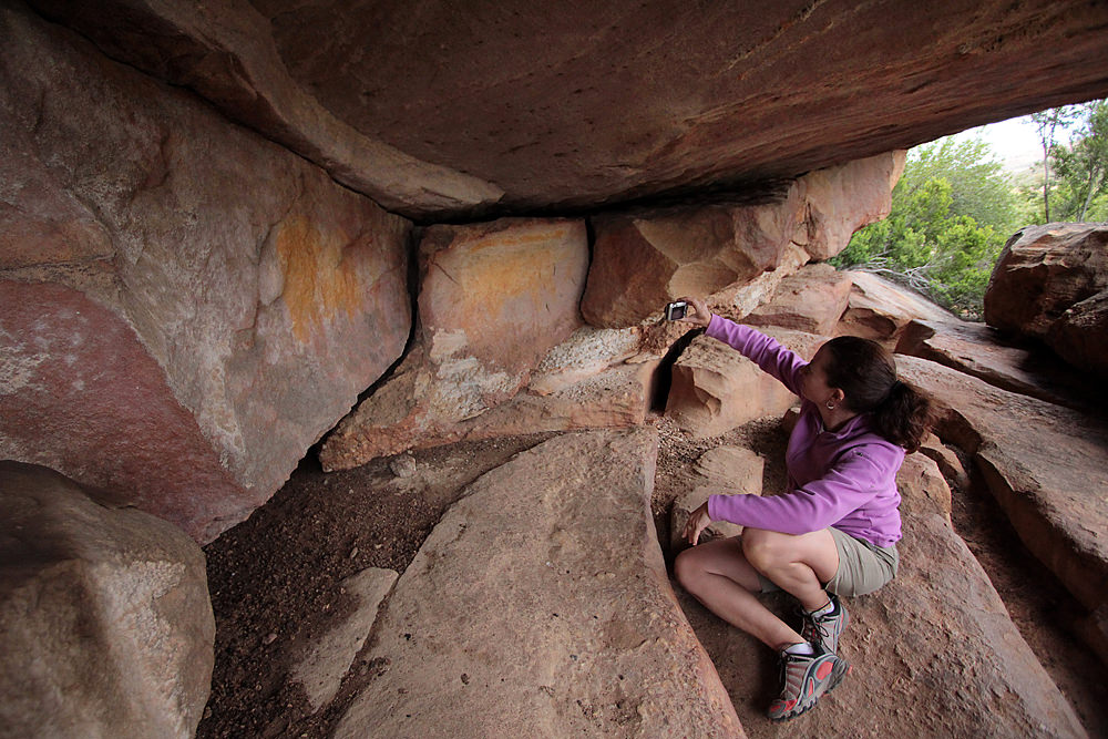 Michelle photographs ‘the yellow elephants’, one of our favorite rock art sites.