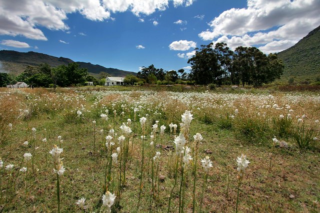 We romped across an idyllic field of white wildflowers and met the burly farmer who runs the Krakadouw Cottages. Abraham then led us to our cottage. We nearly cried for joy.