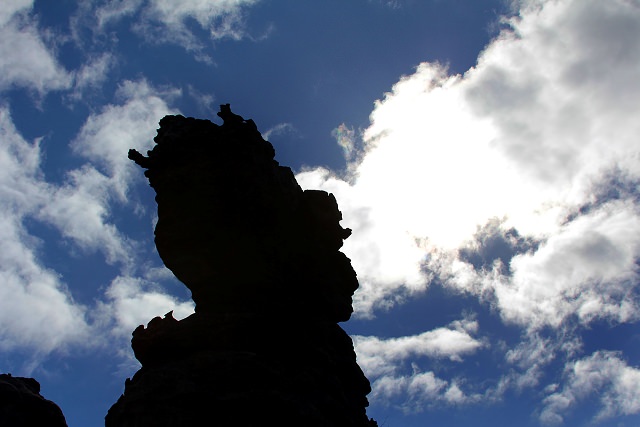 Morning sun, clouds, and rocks.