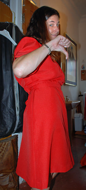 Sounds like my kind of place. I LOVE thrift shopping! And I TOTALLY love the orange dress–to die for! Thanks to Smokey for that photo.