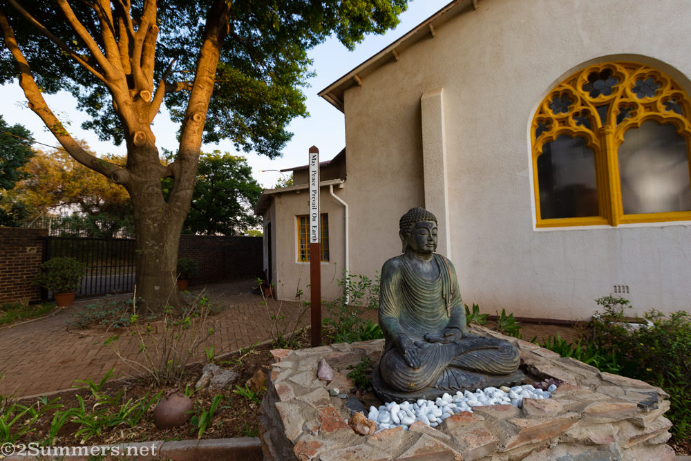 The Lam Rim Buddhist Centre is in Fietas (also known as Vrededorp) — a historically non-white suburb in Joburg that experienced forced removals and virtual destruction during apartheid. The building used to be an Afrikaans Dutch Reformed church.