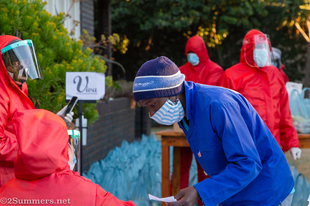But yeah, this is indeed the world we’re living in. It’s not a movie set. And the suits are definitely not an overreaction. If someone comes down with COVID-19 it could put the whole program in jeopardy, and that simply cannot happen right now. The volunteers distributed 420 parcels today, bringing the total to 3895, and the need is clearly not lessening.