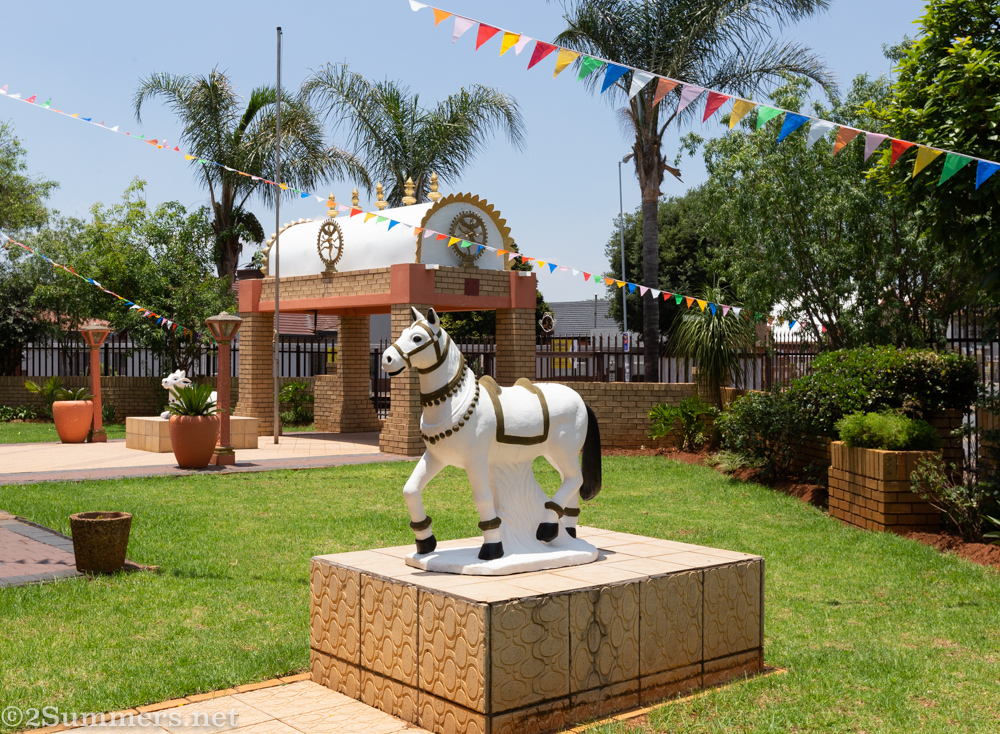 We still had some time before lunch so we drove around looking at all the interesting streets and houses. Then Faarooq took us to a Tamil temple near the Pather house, which was founded by a member of the Pather family. (If you’d like to learn about another super interesting Tamil Temple in Joburg, read this post about Kavady at the Melrose Temple.)