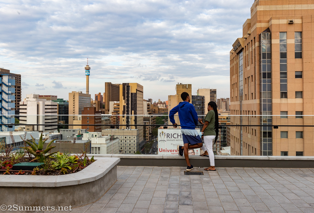 It was a beautiful late summer day — warm, with puffy white clouds scattered across the sky. I got to catch up with several of my best Joburg-loving friends, have a glass of wine and some canapés, and take tons of photos of the Joburg skyline. Basically it was a perfect evening — the kind of evening I might have taken for granted a year ago but never will again.