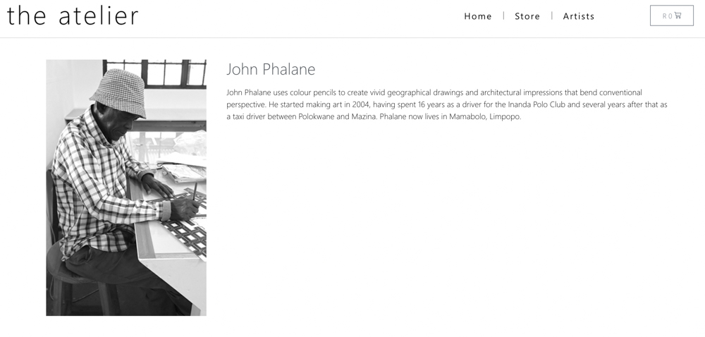 I googled John Phalane when I got home and read some articles about him. He’s in his mid 60’s, born in Limpopo, and spent most of his life as a driver — first for the Inanda Polo Club in Joburg and later as a long-haul taxi driver in Limpopo. He is a self-taught artist. Years of driving before the invention of the GPS filled John Phalane’s head with maps; now he spends his retirement turning those mental maps into art.