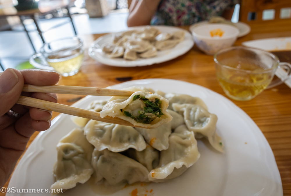 Daisy’s vegetarian dumpling options are limited: There is one vegetable dumpling on the menu but they were out on the day we went. I had the mixed dumplings with pork, leek, shrimp, and egg, which were freaking delicious.