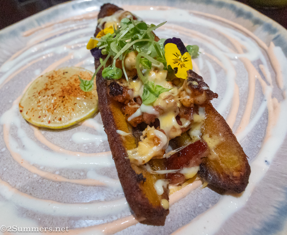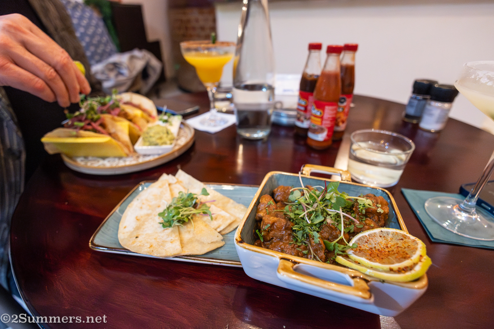 I went for dinner at Artüro not long after seeing that post, and I did have some great tacos. But I also realized that Artüro isn’t exactly Mexican — or at least it’s not ONLY Mexican. In addition to tacos and nachos and margaritas, the menu offers stuffed plantains, Colombian red snapper, and a Central African dessert called Mikate: beignets with Benin chili sauce.